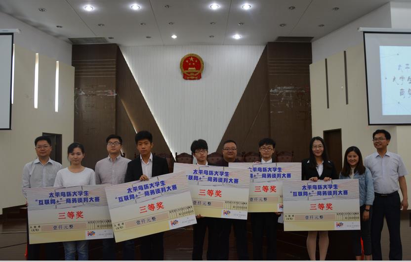 5月28日下午,由我院主办的“太平鸟杯”大学生“互联网+”商务谈判大赛决赛在法政学科楼报告厅举行。本次大赛邀请到中共射阳县委组织部人才办副主任、江苏省射阳县海河镇镇长丁强、太平鸟公司人资中心负责人金丹妍、良言录社群创始人孙宁、江苏中企教育科技股份有限公司总经理姚俊,南京财经大学我院副教授杨青龙担任评委,来自南京财经大学、南京师范大学、南京邮电大学等高校的24支参赛队伍上演精彩的商业角逐。