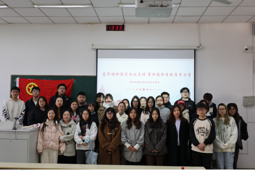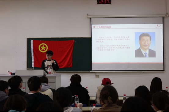 为宣传中国优秀传统文化,增强文化自信。11月24日,我院国实2101班开展了“高举旗帜坚定文化自信,勇担使命贡献青年力量”的主题团课,校团委书记张蔚伟、院分团委书记邓盛佳出席了本次团课。